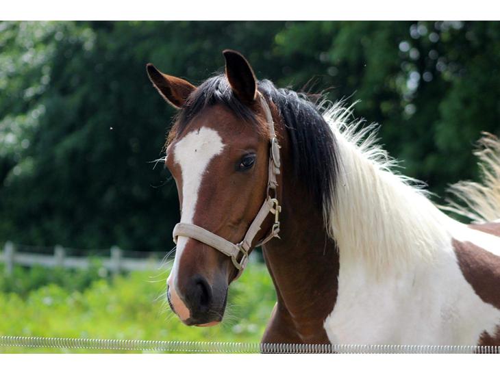 Smuk brun broget hoppe med stjerneblis og smuk smuk farvelade