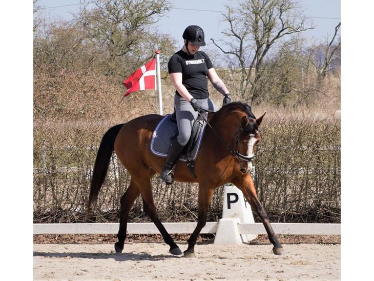 Gloria kan tages alle steder hen uden selvskab af andre heste og kan rides ud på små ture med rytter alene.