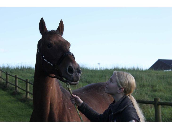 det hele startede med at vi var ude og se på Coco da jeg så hinde syntes jeg hun var noget helt specielt da jeg så hade prøvet hinde viste jeg bare at det skulle være hinde 2 dage sener hentede vi hinde og hun blev min til at starte med brugte vi meget tid på at lære hinanden at kede der gig ikke så lang tid før vi hade et rigtig godt forhold til hinanden Coco og mig begynde at få dresuger undervisning og det gig rigtig godt en til en dag hvor hun fik en sene skade som hun stadig har i dag men det bliver beder og beder for hver dag der går om 5 måneder er hun klar igen og så har hun stået stille i 1 halvt år jeg fortryder ikke et eneste øjeblik jeg har haft med Coco hun er mit et og alt hun betyder alt for mig