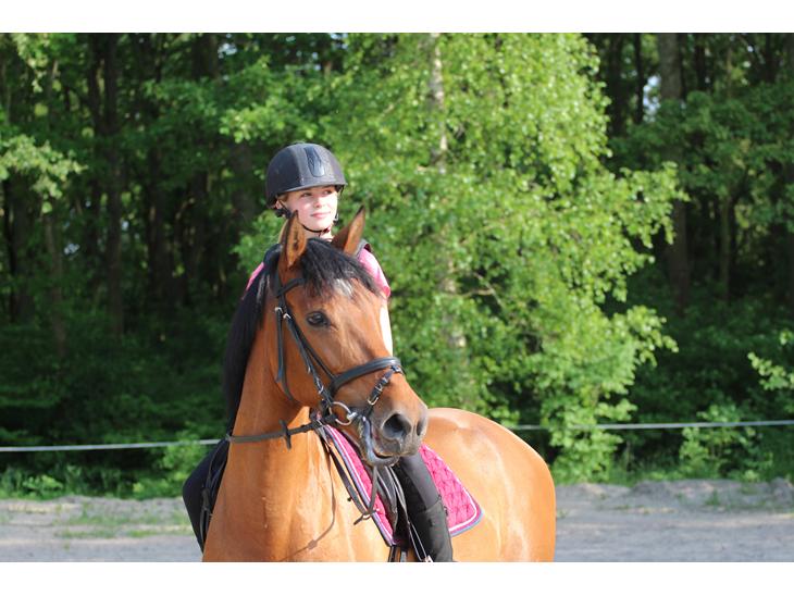Den skønneste ponypige i hele verden! Verdens største nussehoved ude i boksen, hvor hun kan finde på bare at stikke mulen op i hovedet på én :,) Hun er meget friskt fremadgående, og man kan næsten ikke holde hende, når man trækker hende xD Hun er faktisk rimelig doven under ridningen!