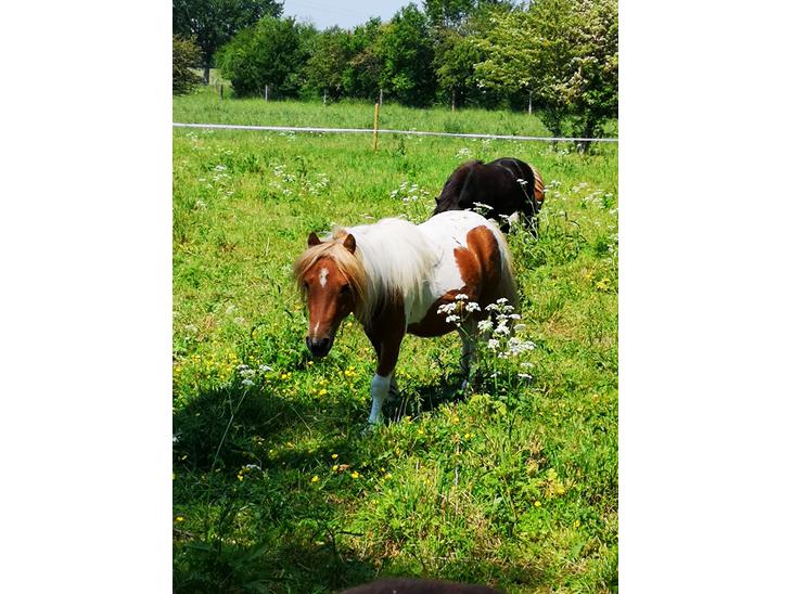 Han har egentlig bare gået med en hoppe og har fået et sortbroget hoppeføl, og skulle derfor have et nyt hjem og det blev så her hos mig og mine to andre hingstebasser.