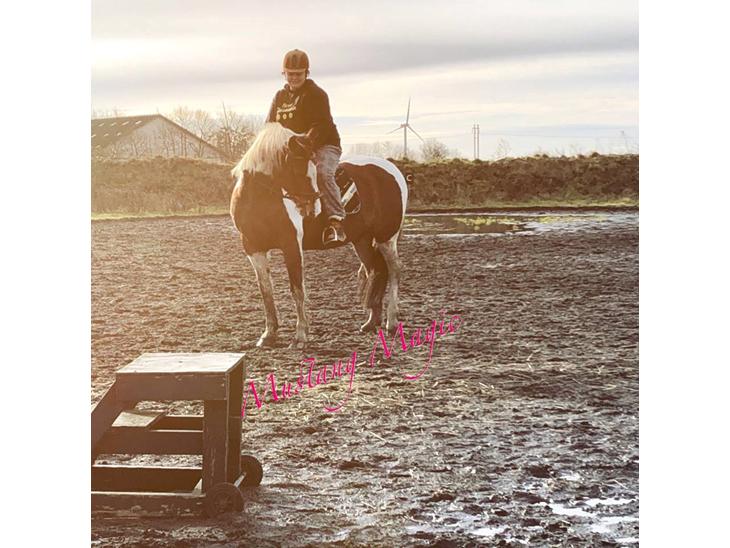 jeg har ikke redet så meget på hende. Da jeg købte hende med en skade i venstre bagben, så hun haltede når hun travede og laver små hop med bagbenet når hun gå fra trav til skridt. (tidligere ejer har ikke fået udredt hendes skade)