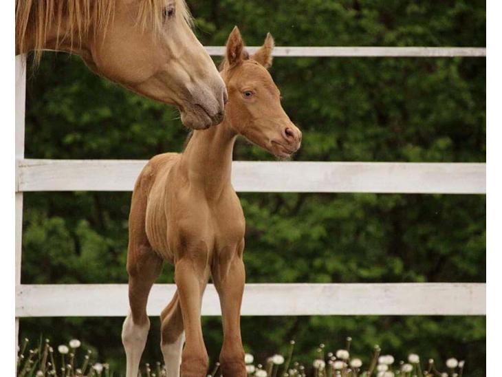 Optimus er champagne farvet. En farve vi ikke ser så tit her i norden. Derudover er han homozygot for tobiano (garanti for broget), så han er meget speciel i sine gener.