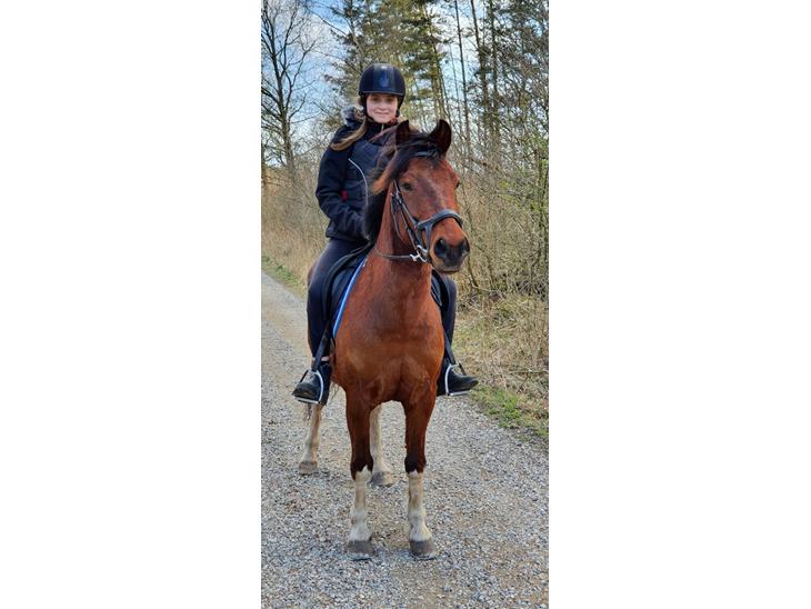Han lærte mig en del selvom jeg kun red ham i en måneds tid fx: Rigtig diagonal i trav og galop, og springe bedre. Jeg fik undervisning på ham og red tur i weekenden. Hans gamle ejer valgte at sælge ham da hun gerne ville have en ny:(