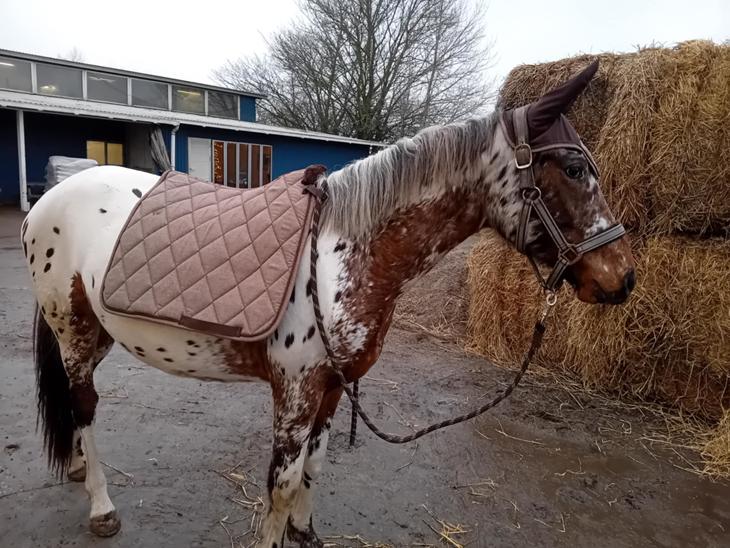 Hun er en skøn og dejlig hoppe. Hun er nysgerrig og var ikke nervøs for at komme og sige hej.
