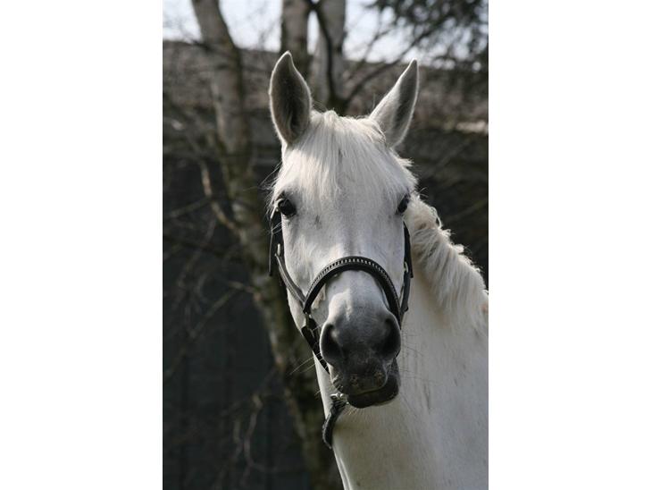Saramia er en Hvid hoppe med sorte ben og Sort omkring mulen og øjenen !