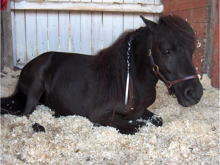 da jeg var yngre havde jeg bare part på en lille shetlænder, der hed Lotte. Og der hvor hun stod var der en pinto shetlænder der hed Lasse, som havde en søster der hed Sille.