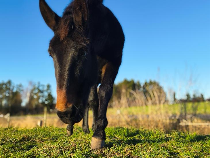 Da Fuego kom til mig var han paniak. Intat andet ord beskriver ham beder... Han kunne ikke "fanges" på folden, han var så langt væk fra mmenser som hegnet tillod og kom man for tæt på og var i en for stresset situration (i han's nervesystem) sprang han over alt.