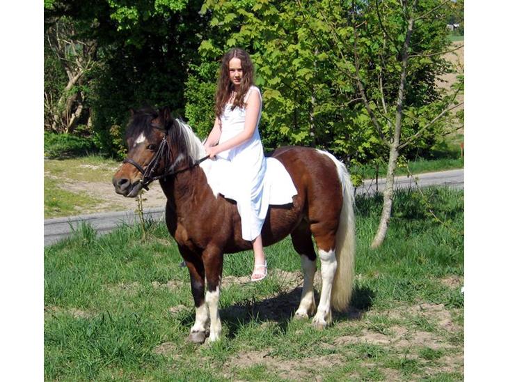 Pony er rigtig nem at trække men er meget madglad så man skal holde godt fast. Hun må ikke spise græs da hun ikke kan tåle det. Hun kan heller ikke tåle støv, har astma og kronisk Bronkitis.(eller hvordan det nu staves?)