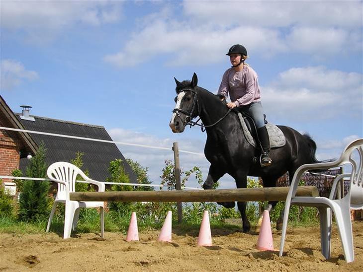 Hun er en meget rolig hest, men stoler ikk på alle fordi hun har været ved ihvertfald 2 hestehandlere. Min mor vil gerne avle hende rolige sind vidre, så hun er blevet bedækket men enzo, en smuk lille araber hingst. jeg har aldrig redet stævner før, da var det bare hygge ridning.. men efter jeg har fået min lille skat her, er der gået lidt spændig i det. Jeg røvkeder mig når jeg ridder dressur, men det ska jo gøres. Så vi satser mest på spring. Jeg har kun sprunget i 4 mdr. Og vi springer nu 95 cm. og det er jeg meget stolt over.