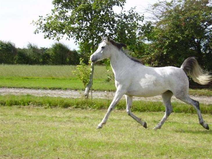 Nu har jeg haft hende et lille stykke tid, og hun er simpelthen den bedste ! Hun er jo lidt tyk, så er begyndt at kondi-træne i den lette ende ... hun nyder at komme ud og bruge sin energi, men den slipper nu hurtigt op ! Hun har knyttet sig til mig utroligt hurtigt, og hilser om morgenen når jeg kommer og skal fodre ! I flokken er hun også faldet rigtig godt til, og vores vallak er virkelig forelsket i hende, men hun er en kostbar dame, så han kigger langt efter hende ! =)