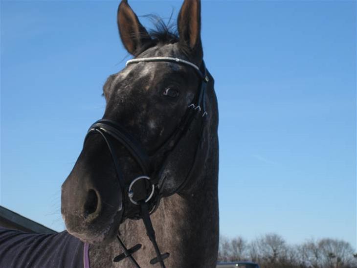 meget dejlig og speciel hest. han er koks grå i hovedet og på halsen. på rykken og bagparten er han lys grå, og med sorte pletter. hvide aftegn på benene, og nogen små enkle brune pletter rundt omkring. han er kort over rykken, meget smal og langbenet. rider dressur og spring og han elsker det :) Han er forhodsvis rolig i naturen, men ikke helt trafiksikker. han er født den 13/2 2003, kommer fra Polen. han knytter sig meget til sin ejer, og følger for det meste efter en.