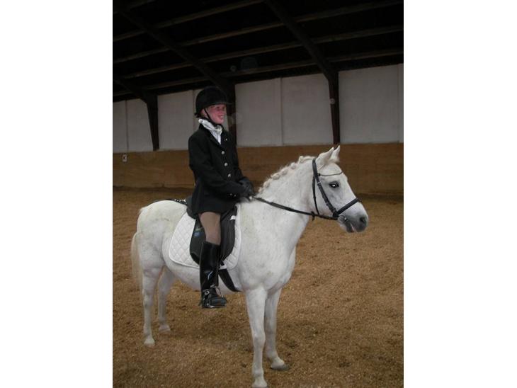 hun var bare verdens bedste pony! Hvid pony, med enkelte sorte plætter på ryggen. Hurtig!!!!!!!!!!!!!!! Men lidt langsom i skridt. Godt nok var hun nu 21 år nu men da jeg en dag red på 50m lang grøs-afstrekning (det var hjem-af retning) også tækte jeg, her kan jeg tage en god galop. men da jeg lage benene til hende var det næsten som om at hun sprang ud af en væddeløbsstartboks. altså som om at hun løb et vøddeløb alene.