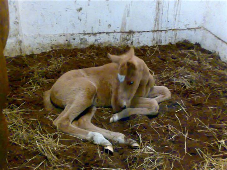 jeg fandt ham ude på marken det var en stort overraskelse at komme ud på en mark og der lå et kært føl han blev deværre kun ca en uge gammel.