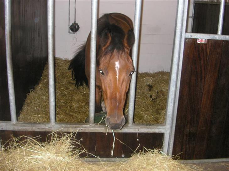 Han havde stået halt siden jul 2007, og smeden mente, at det var surstråle han haltede af, men da jeg fik det bekæmpet, haltede han stadigvæk. Så fik jeg at vide, at han var vælted på et tidspunkt, da han stadigvæk gik løb, og jeg snakkede så med Claus og MArtha om det, og de mente, at det godt kunne være det han var blevet halt af, og at jeg ikke skule regne med, at han blev ridehest igen. Med den besked, blev jeg utrolig ked af det, og begyndte selvf. at græde, og gik så over til ham. Jeg snakkede med ham, og da jeg sagde, at det nok ville være for det bedste, hvis han blev slagtet, og kom væk her fra, ville han få det meget bedre, og det var som om, da jeg sagde det, at han forstod det, og lagde sit hoved på min skulder. Det var der jeg besluttede, at han skulle væk fra mig. Jeg sagde det til Martha, og hun ringede til hans ejer, skolen lånte ham kun, og spurgte, hvad hun syntes. Hun var ude og se til ham, og hun mente så, at det også var for det bedste.