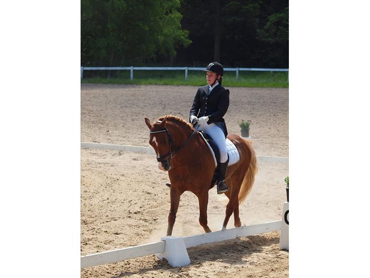 » han er rød med et stort temperamen noget af det jeg elsker ved ham han er sin egen ! men han er stadig god til at lære han tager godt imod men hvis det er en ny der skal prøve ham kan der godt komme nogle problemer det er derfor de fleste har svært ved at ride ham <3 ;i