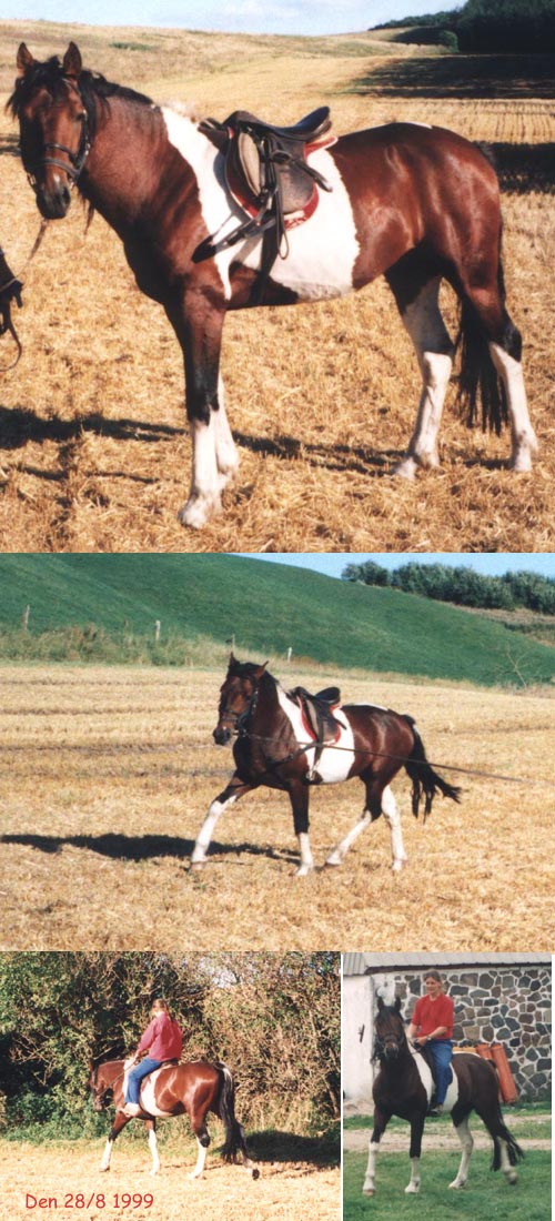 Ingen. Jeg gjorde ham selv ryttervant, da han var 4 år gammel, og valgte derefter at låne ham ud til diverse ryttere. Han er desværre aldrig blevet redet seriøst. Han var supersød at gøre ryttervant. Tog det som en selvfølgelighed, at jeg sad oppe på ham fra første gang og var ivrig og glad for at lave noget, --- Hver gang.