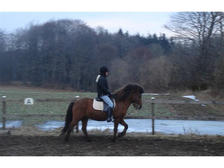 Verdens dejligste islænder. Han har været min mors, men hun har overtaget min pony og vil avle lidt. Så nu er jeg ny islænderrytter og det er sjovt. Han er rigtig rar og en rigtig kælepotte. Han er 4 år gammel og er redet kort tid... vi tager det stille og roligt og han lytter fint til mig.....Det bedste han ved er at klø hans hale op af krybben eller bookslågen så hele stalden ryster.