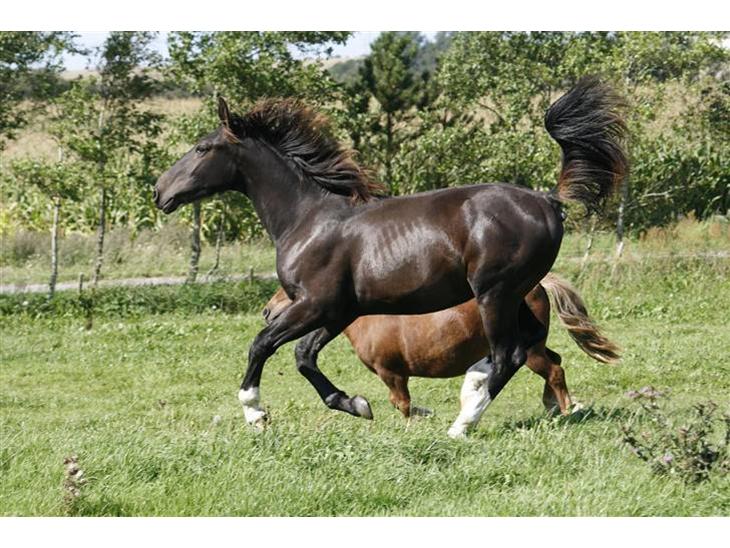 Rigtig smækkerlækker sort vallak på 1 år, flyvende gang når han strutter rundt på engen med de andre :)