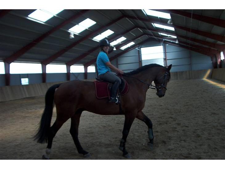 en dejlig vallak, som er et rigtig nussehoved. Jeg er lige begyndt at ride på ham og det går okay.