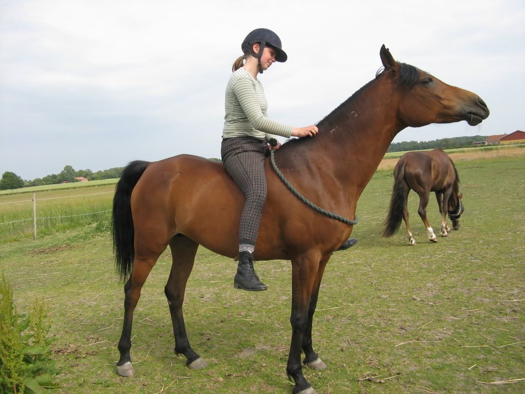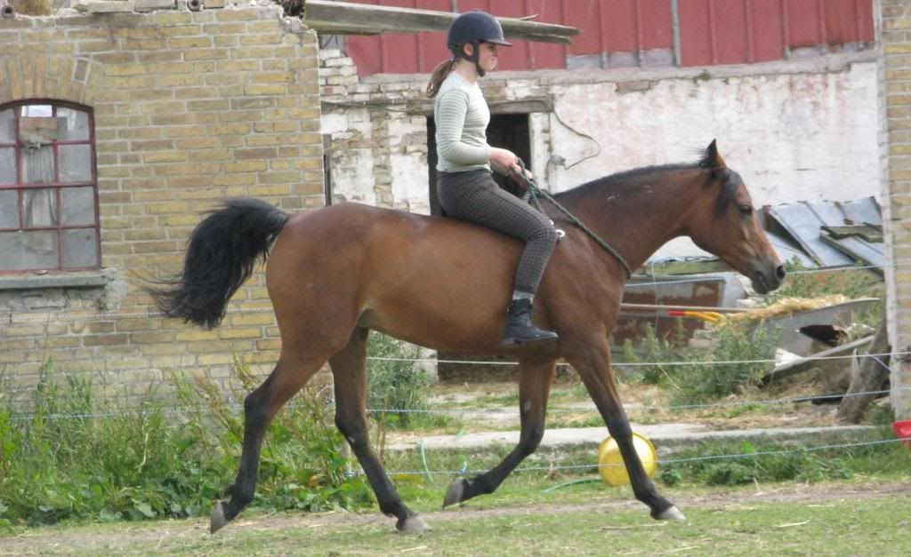 Her er i hvertfald nogle af min fuldblodsaraber, Gazelle, hvor vi rider uden udstyr