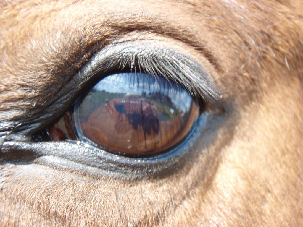 Jeg har her to billeder af min egen hoppes ene øje, så i kan se hvad jeg mener: