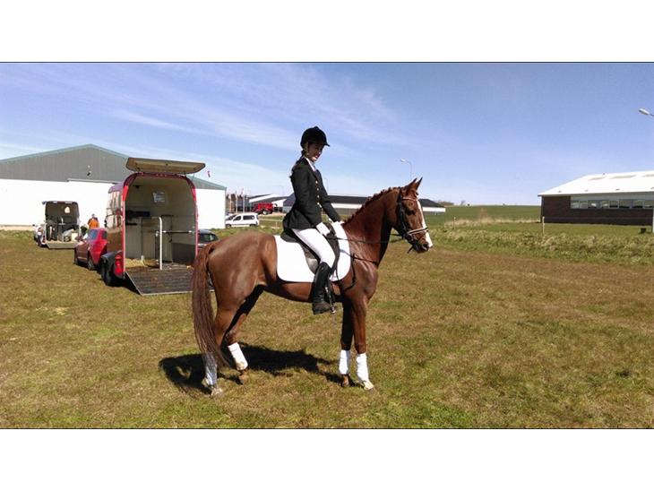 Jeg har redet nogle stævner på ham i Dressur og spring (LD og LC). Han er opmærksom når han kommer ud og kan godt gå og vrinske, men handler meget om tillid mellem ham og hans rytter