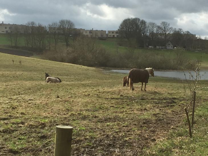 Der er to store folde, som vi skifter i mellem, for at sørge for, at der er tørrest muligt og godt med græsmuligheder. Den ene med lille vandhul og "skov" og den anden med meget lækkert grønt græs.