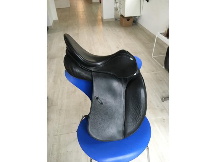 Lækker kvalitets dressursadel (NEDSKÅRET PRIS) , Købte for ca. 3 år siden, men kun brugt i cirka 6 måneder, denne lækre kvalitets Christoph Hubertus sadel, direkte fra ham selv. Har brugt den på en kat. 1 pony, og er også omstoppet efter det. Er passet og Plejet, og har kun en lille ubetydelig skramme bag på. Denne sadel er lavet til korte heste, men kan lægge på alle, den er super god, og er rigtig god for hesten, da den er blød, og ikke gnaver eller presser på ryg eller i lysken, når man rider. Jeg havde en meget problematisk pony angående sadellejet, og dette var den eneste sadel, der lå som den skulle. Sadlen har ikke været brugt i efterhånden et stykke tid, men har hængt indedørs på buk og er regelmæssigt plejet.