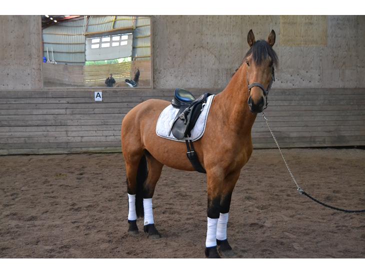 Er en dejlig arbejdsvillige hest, potentiale for blive en rigtig fin ride hest.
