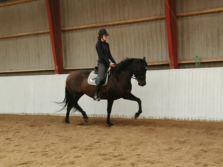 Utrolig smuk P.R.E hoppe med stor ridelighed og masser af uudnyttet kapacitet.160 cm i stg, 13 år. Tre virkelig gode gangarter og meget lærenem hoppe. En hest der altid er dejlig let at ride og lytter meget til sin rytter.