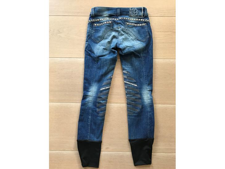 Str. 12 år. Superfede ridejeans med masser af stretch. Bløde og behagelige at have på. Der er tryk af Marilyn Monroe på venstre hofte samt nitter både for og bag. Nypris kr 1999,-. Kvittering haves.