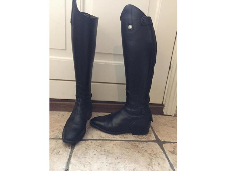 Montar ridestøvler i lækkert kalveskind i størrelse 38 i fod og xs i vidde. Sidder perfekt på både fod og læg og har en god støtte, skindet er så dejligt at man næsten ikke bemærker at man har en støvle på. Nyprisen var 1800,- sælges for 1000,-