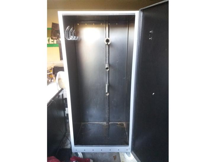 Stald skab på hjul.. har plads til 2 til 3 sadler kan låses... har lidt skrammer bag på men ellers fint skab..