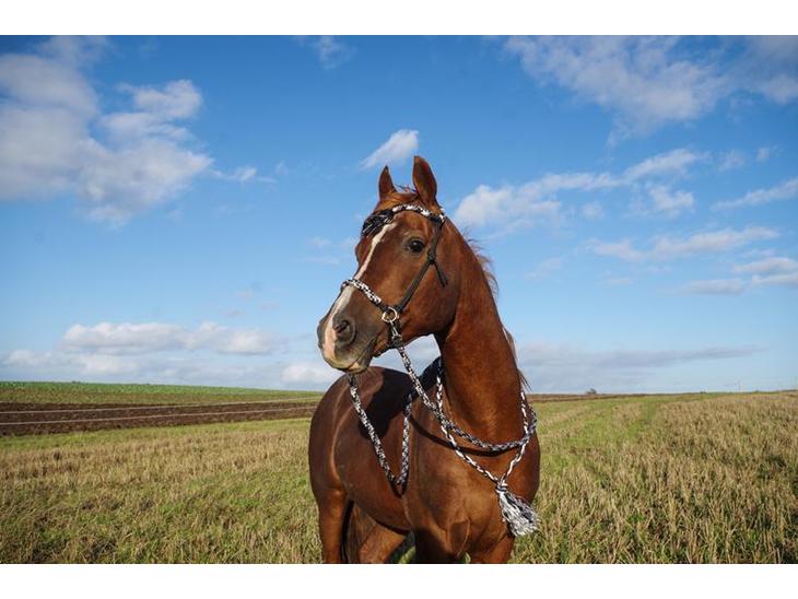 Denne trense er lavet med mange små detaljer som gør den mere unik. Tøjler og flettet cordeo medfølger.