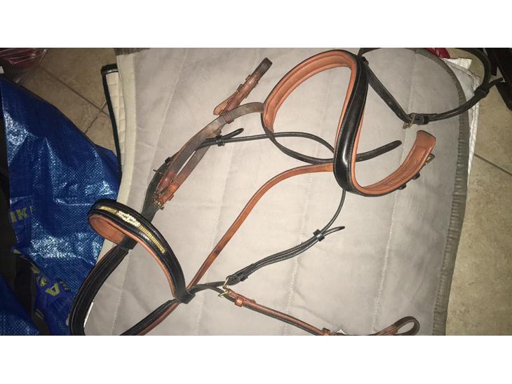 1. Sort KIEFFER trense med brun foring og messing spænder. Brugt få gange.