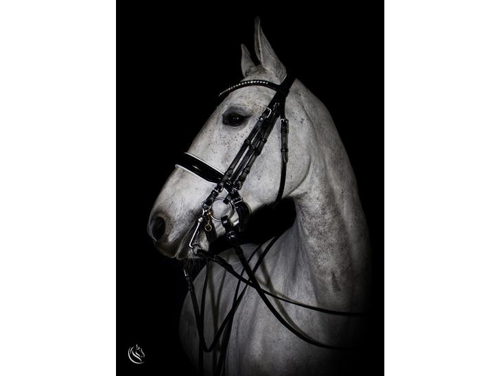 Begge modeller er med ergonomisk nakkestykke med ekstra plads til ørerne, samt store krystal sten i pandebåndet. Der medfølger 2 sæt lædertøjler tilbegge. Fåes i str. Full og Xfull.